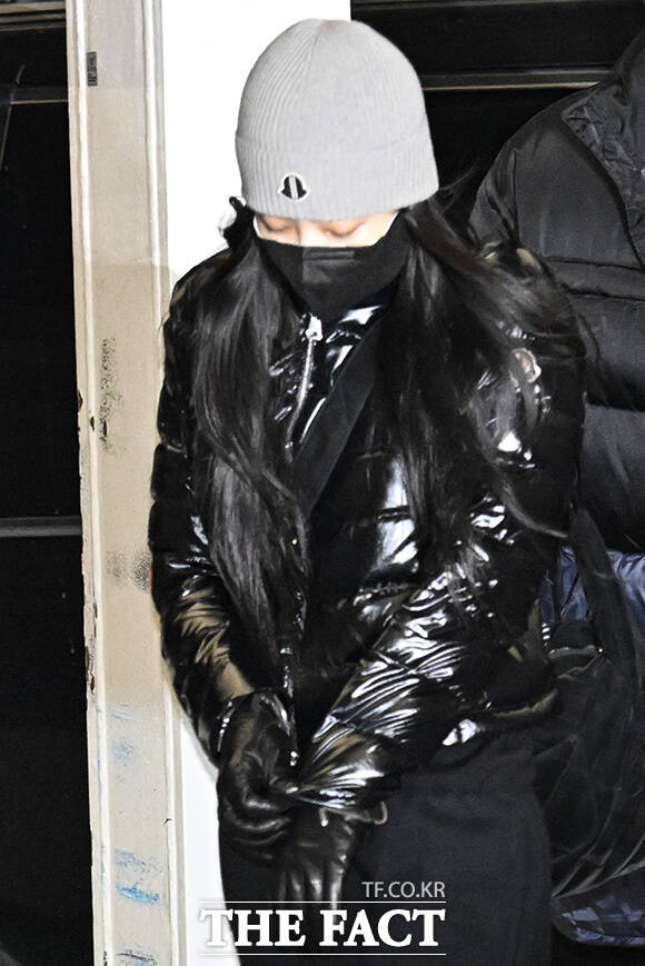| 제니가 추위에 겉옷을 정리하고 있다. |